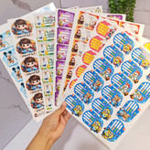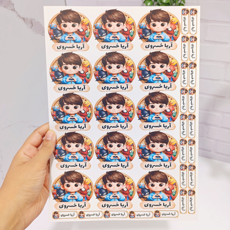 در طرح های مستطیل شکل،در هر ورق ۲۱برچسب کتاب و ۱۸برچسب مداد وجود دارد،در سایز طرح ها بسته به نوع طرح تعداد متفاوت هست و از طریق اینستاگرام استعلام بگیرید