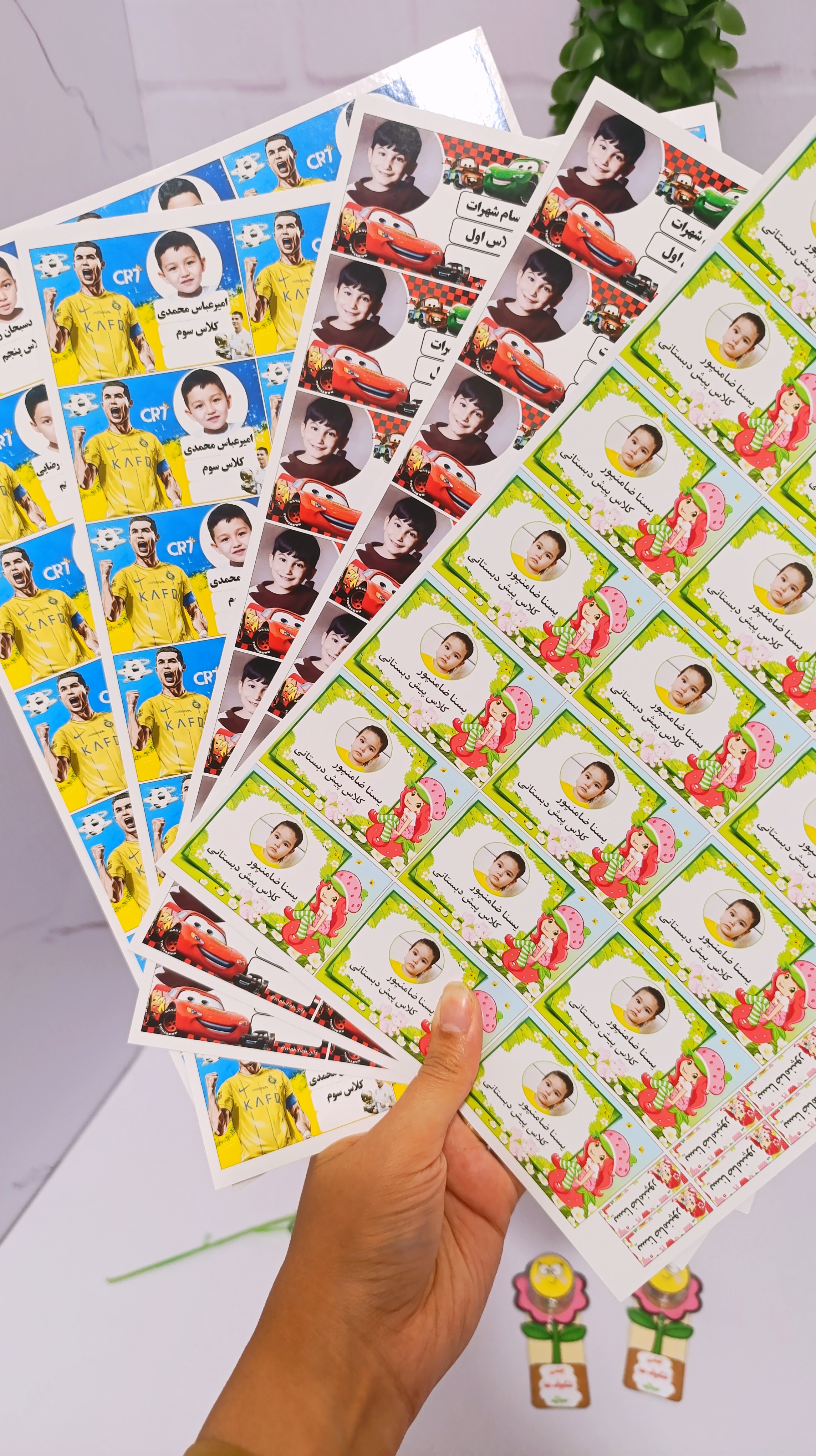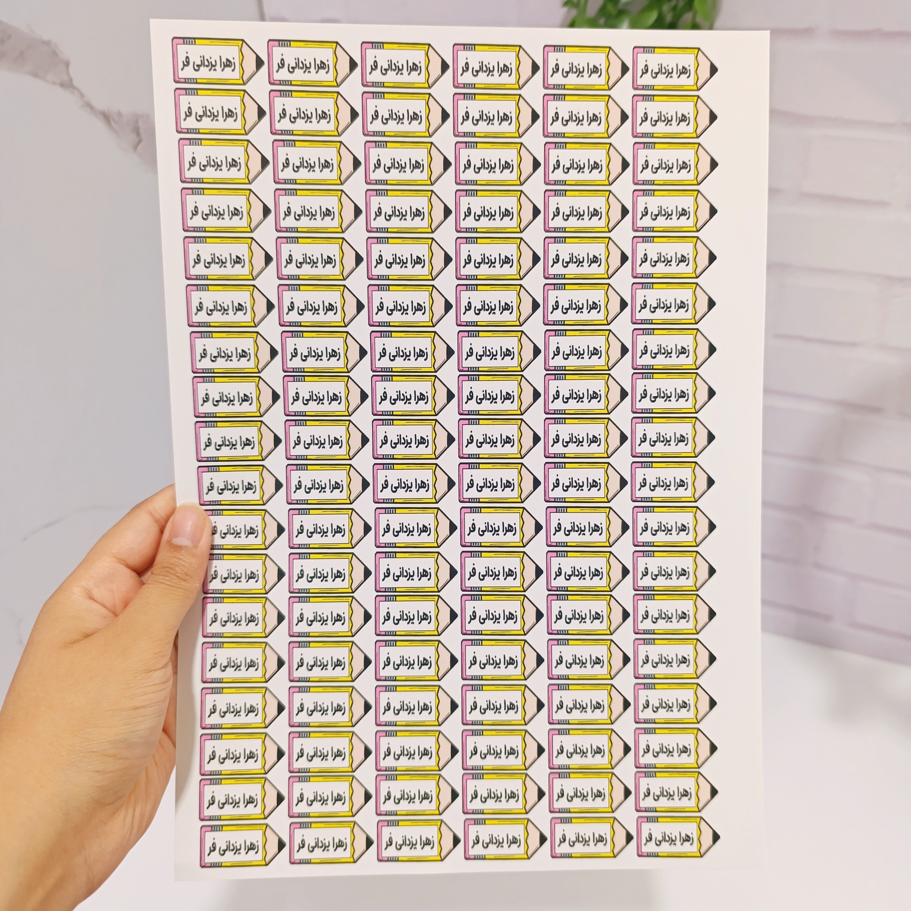 در طرح های مستطیل شکل،در هر ورق ۲۱برچسب کتاب و ۱۸برچسب مداد وجود دارد،در سایز طرح ها بسته به نوع طرح تعداد متفاوت هست و از طریق اینستاگرام استعلام بگیرید